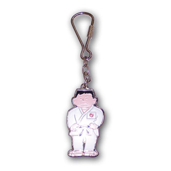 Portachiavi karate gommato.Lato bianco con ideogramma e atleta