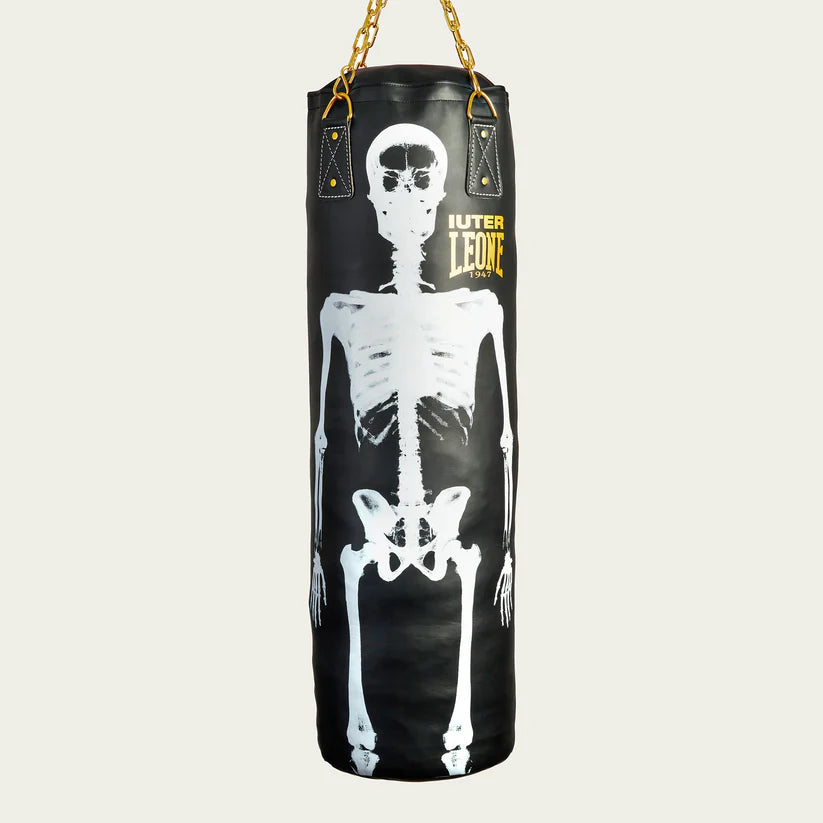 Design Collaborativo Iuter x Leone: Questo sacco si distingue per il suo colore nero e il design esclusivo nato dalla partnership tra Leone 1947 e Iuter. Unisce la tradizione del pugilato all'estetica streetwear di tendenza, rendendolo non solo un attrezzo ma un vero e proprio statement di stile.